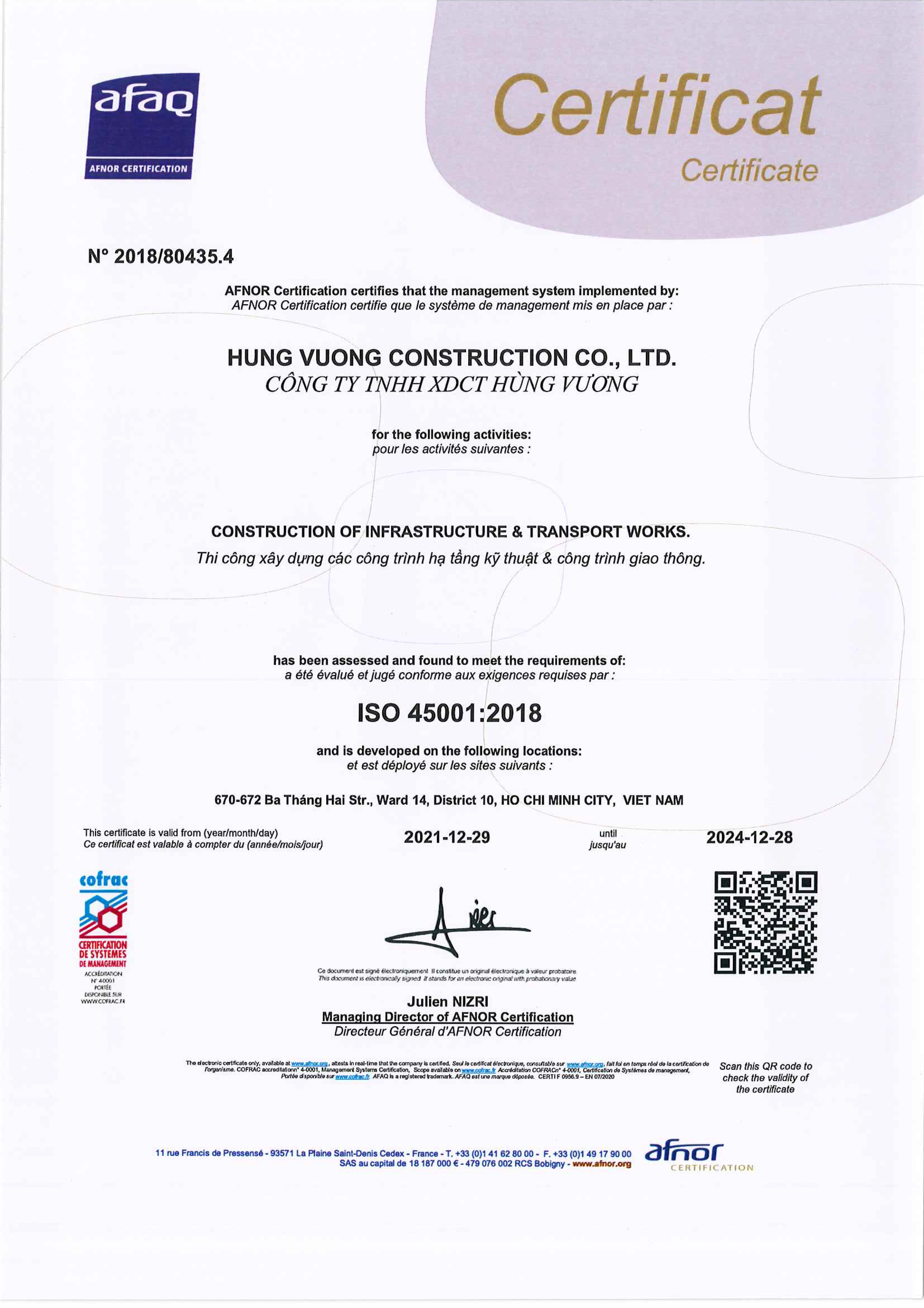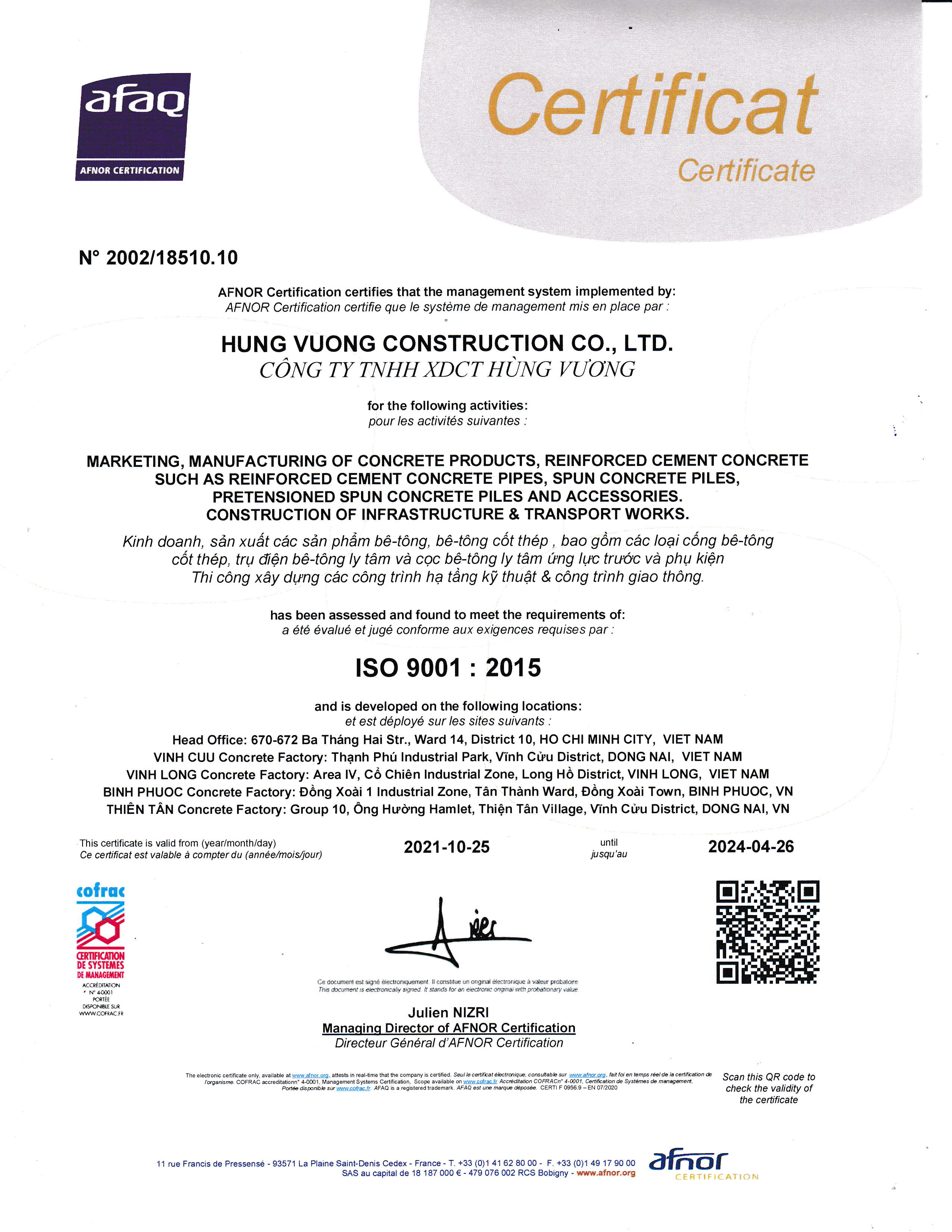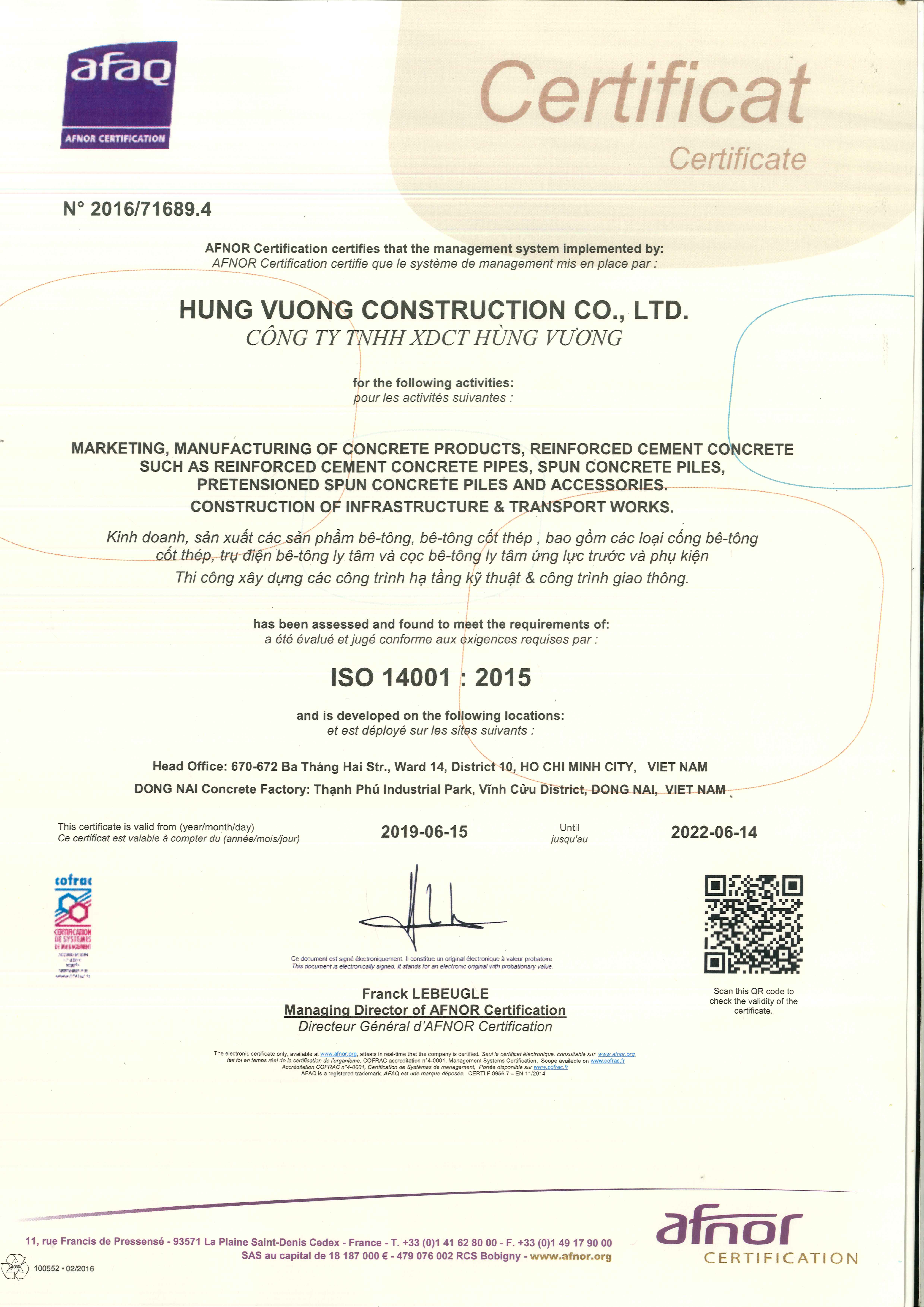 1. Sử dụng hệ thống quản lý chất lượng ISO do tổ chức AFAQ AFNOR INTERNATIONAL của Cộng Hoà Pháp Cấp